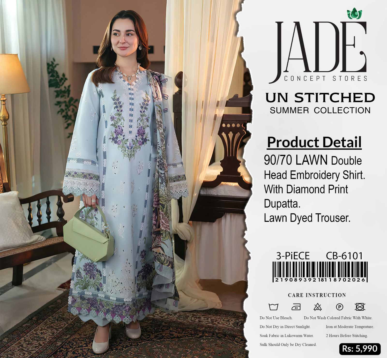 Jade - 90/70 Air jet Lawn | Premium Embroidered unstitched 3 piece Suit for Summer season